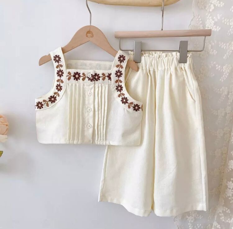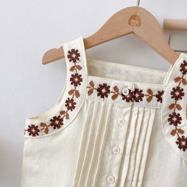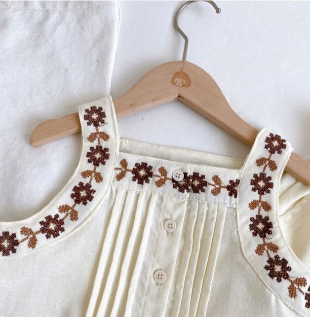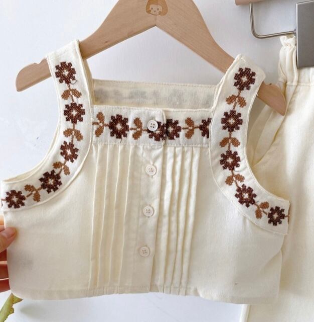 トップスの刺繍が可愛い♡コットン素材で通気性よく涼しい生地になっているので夏にピッタリです‼︎