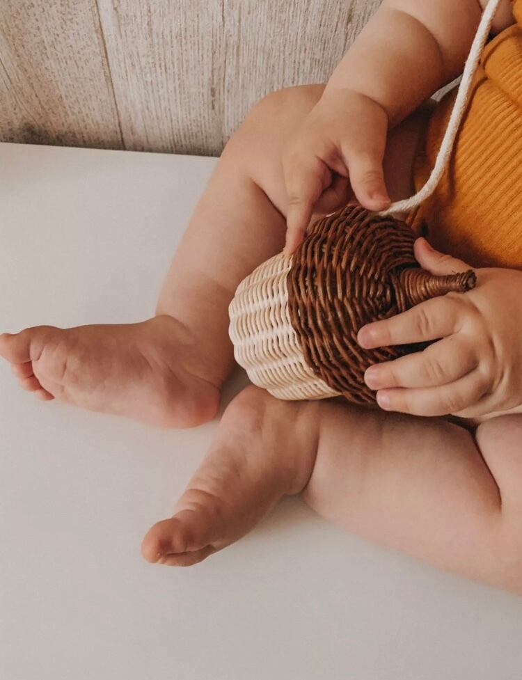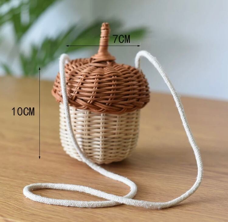 ラタン素材のコロンとしたフォルムが可愛いどんぐりモチーフのショルダーバッグです(^^)