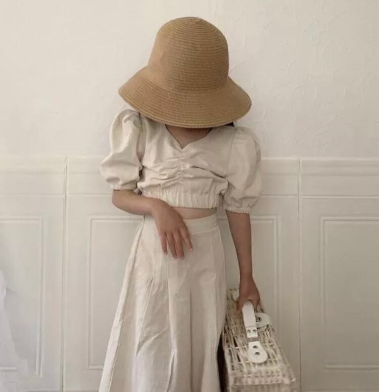 今年トレンドのショート丈トップスはパフスリーブになっているのでシルエットがとても可愛い♡♡♡
