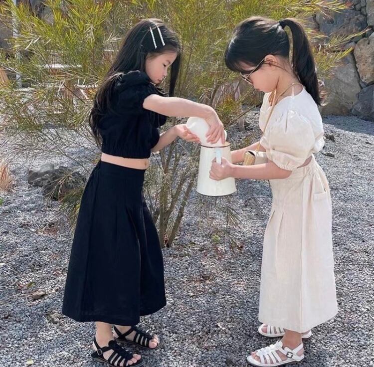 コットンリネンなのでナチュラルな雰囲気で着ていただける大人顔負けのセットアップです♡♡♡