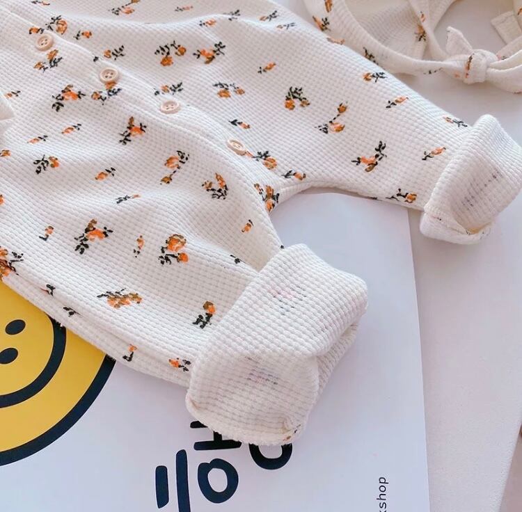 柔らかいワッフル生地の長袖ロンパースです♪