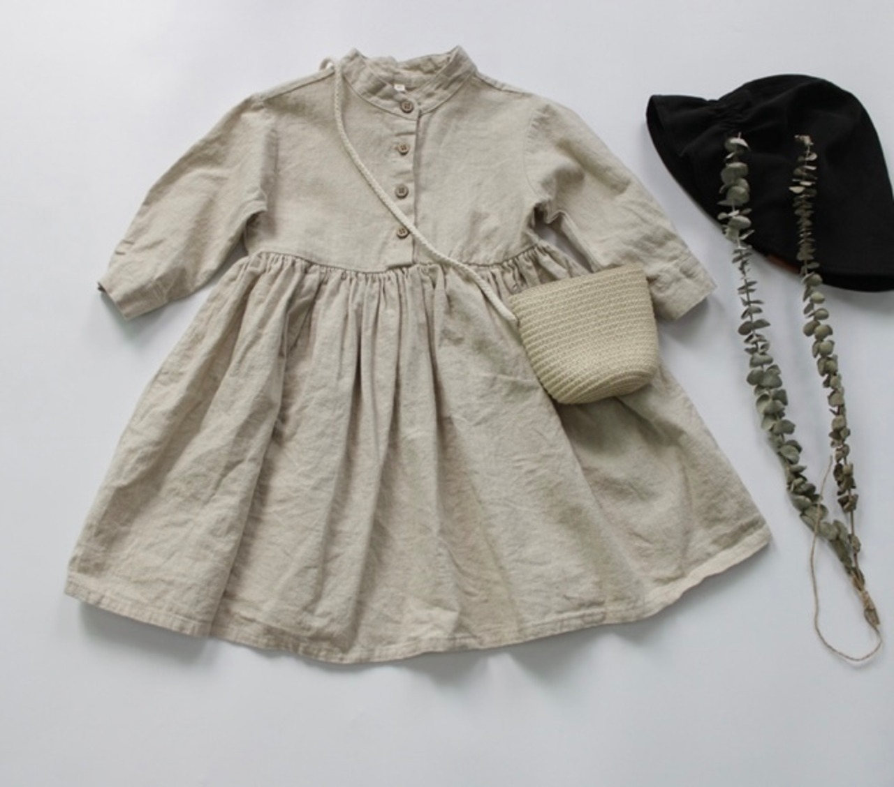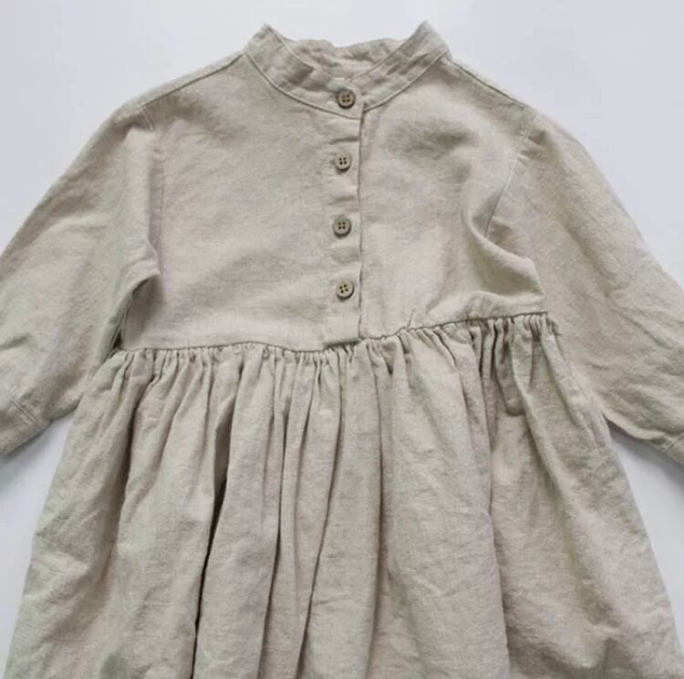 コットンリネンのナチュラルな長袖ワンピースです‼︎
