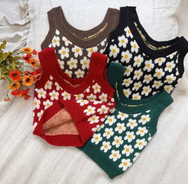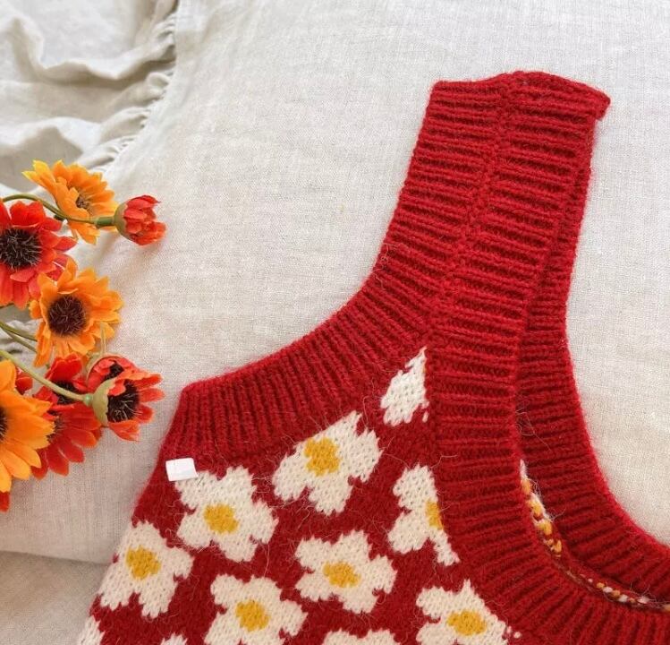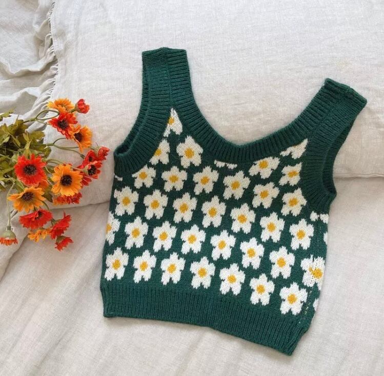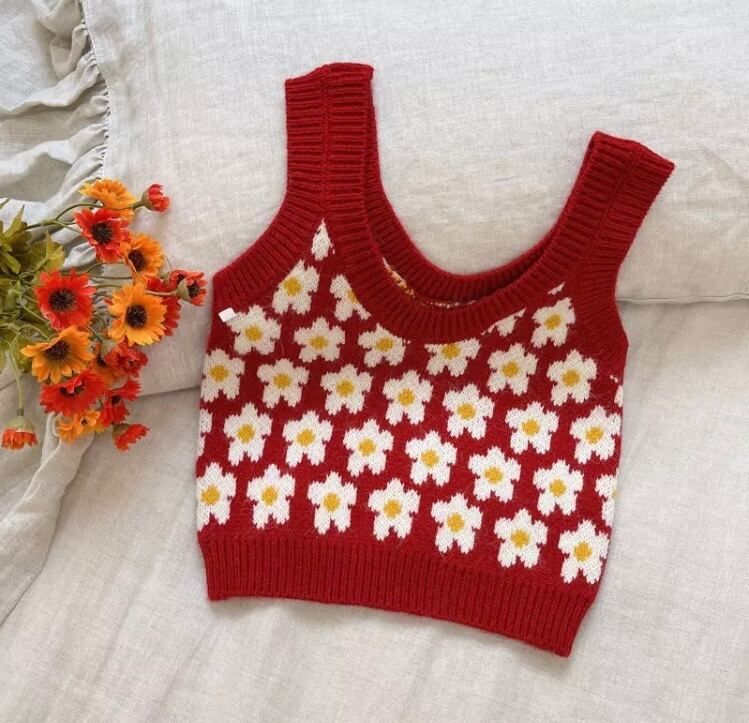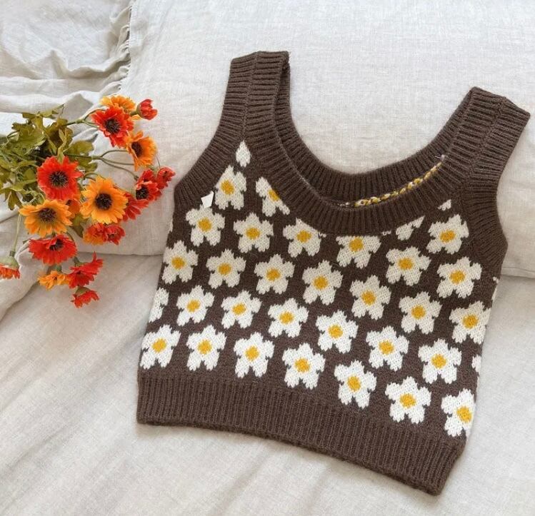 ホワイトのデイジー柄がとても可愛いニットベストです‼︎