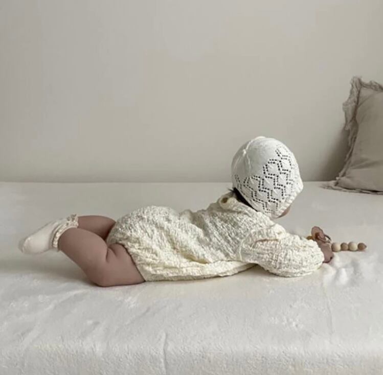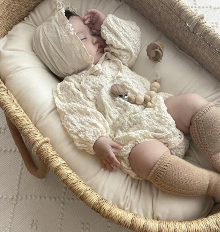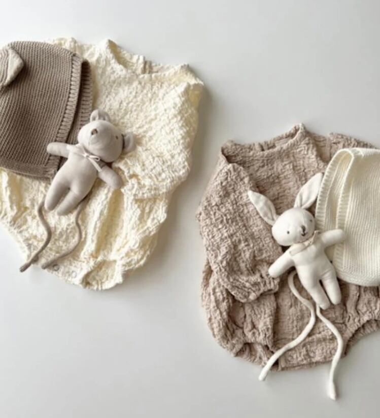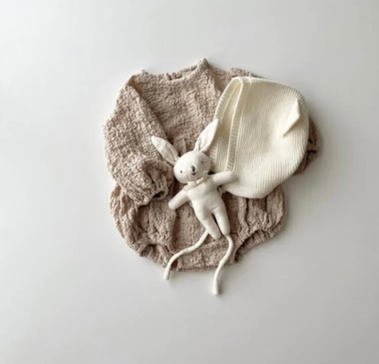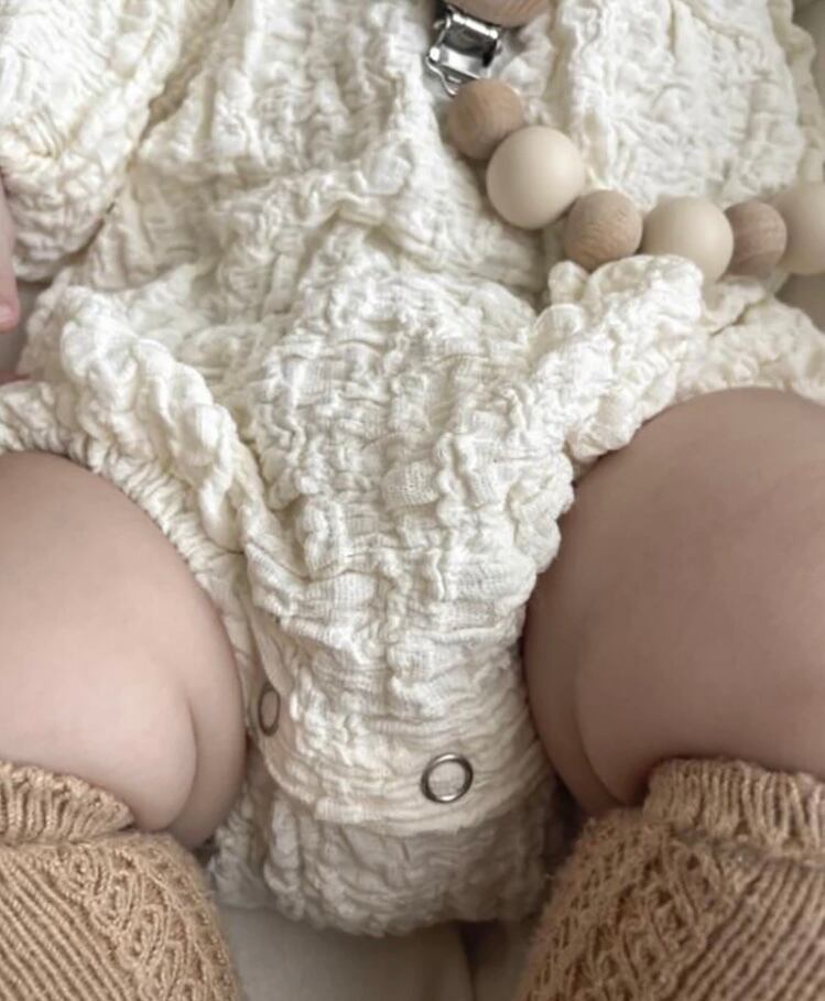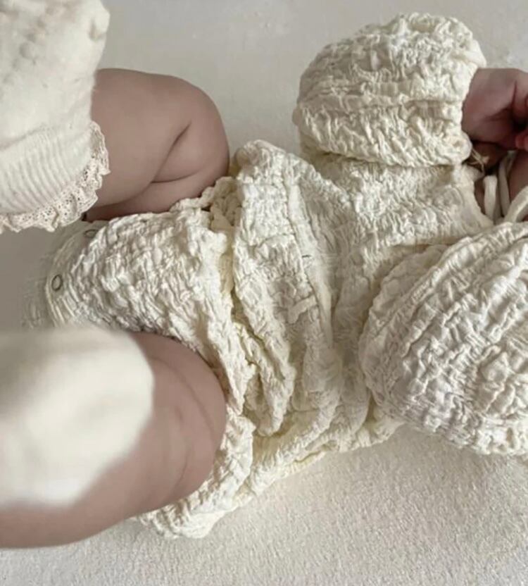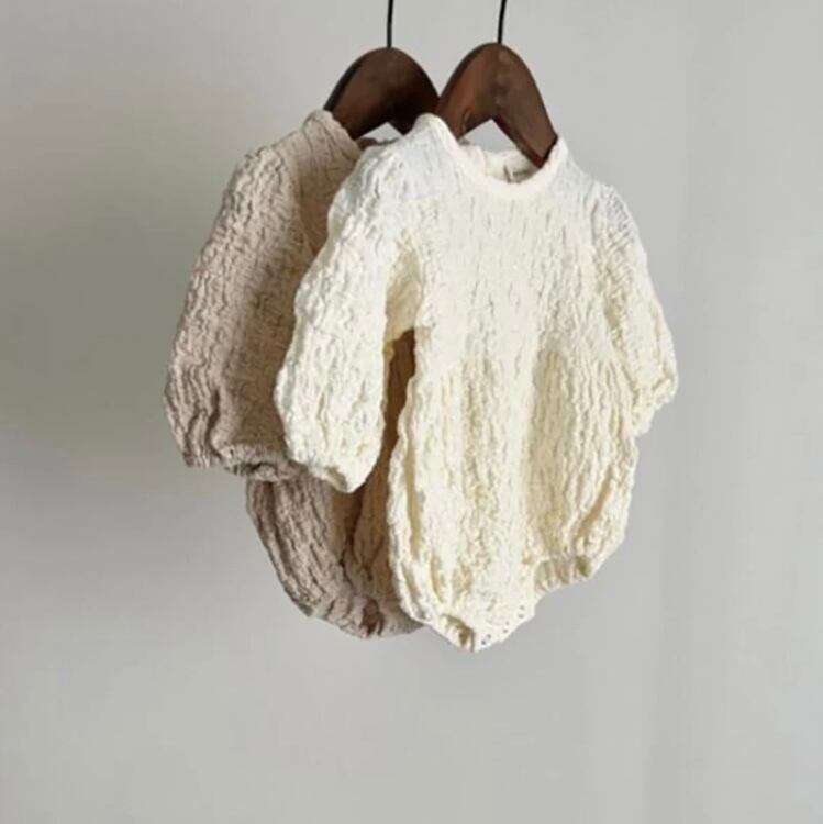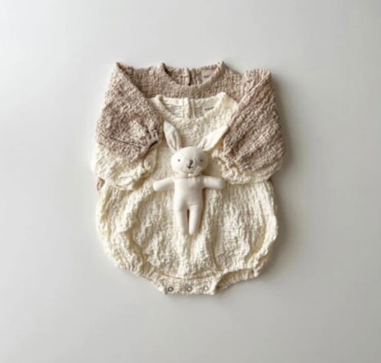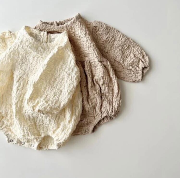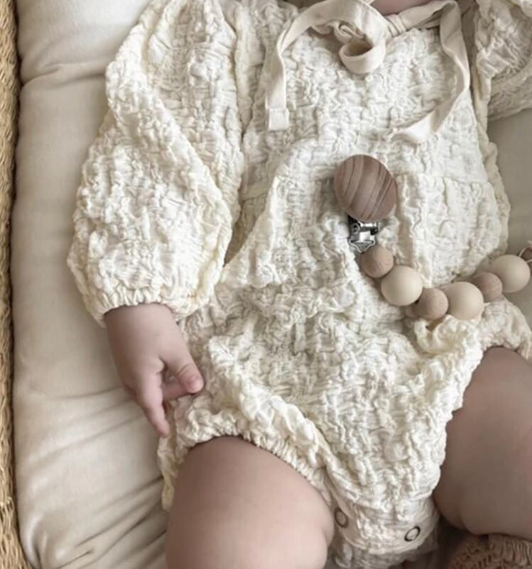 ソフトな触り心地で、くしゅくしゅとした素材感がとっても可愛い♡長袖ロンパースです‼︎