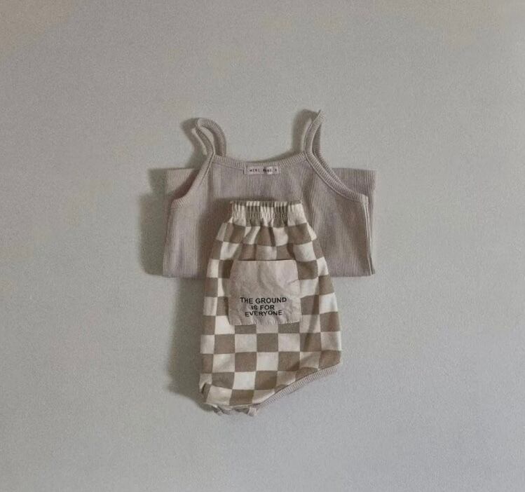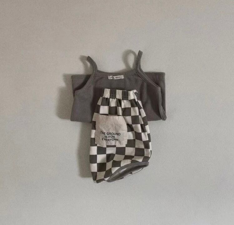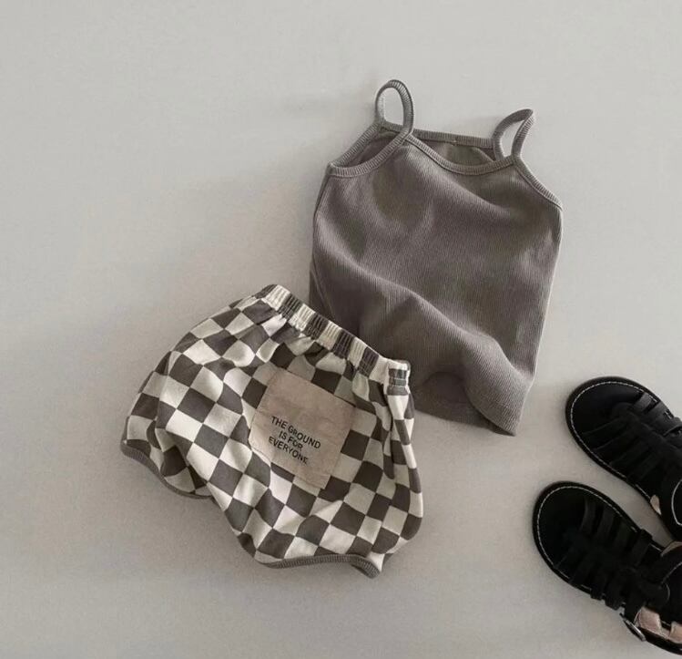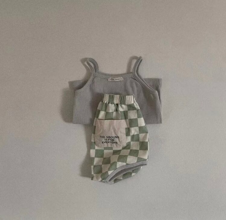 優しい色合いのキャミ&チェッカーショーツのセットアップです‼︎