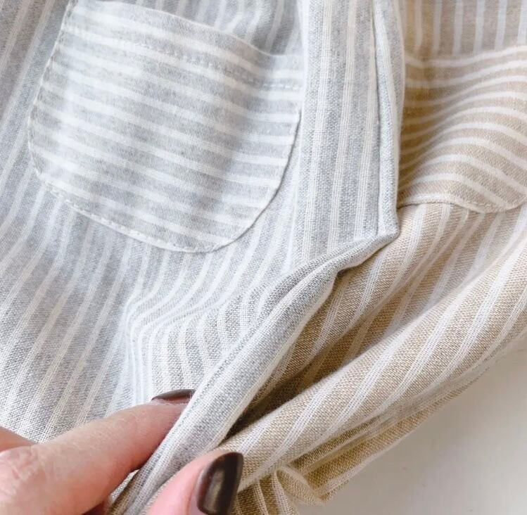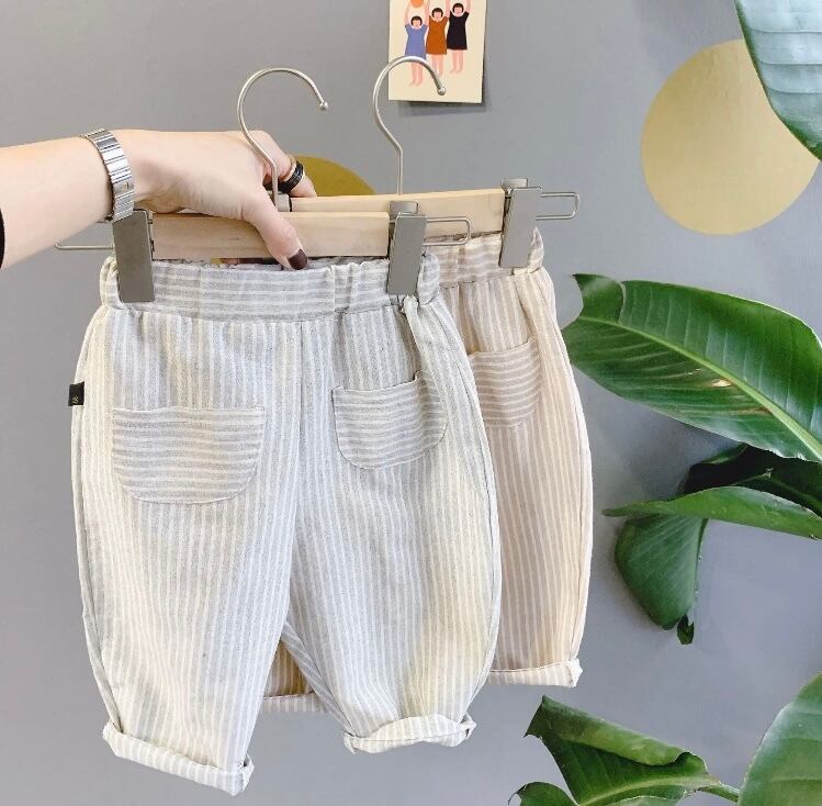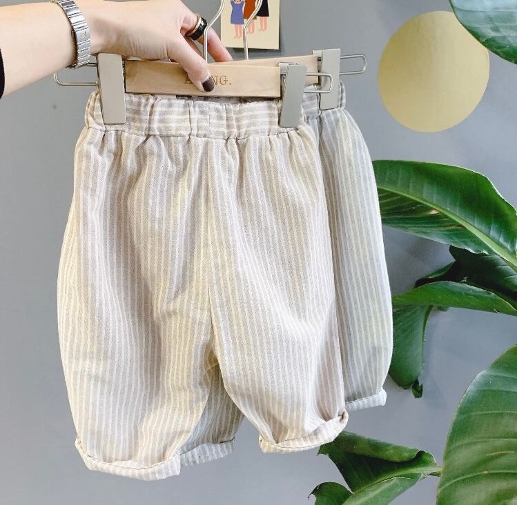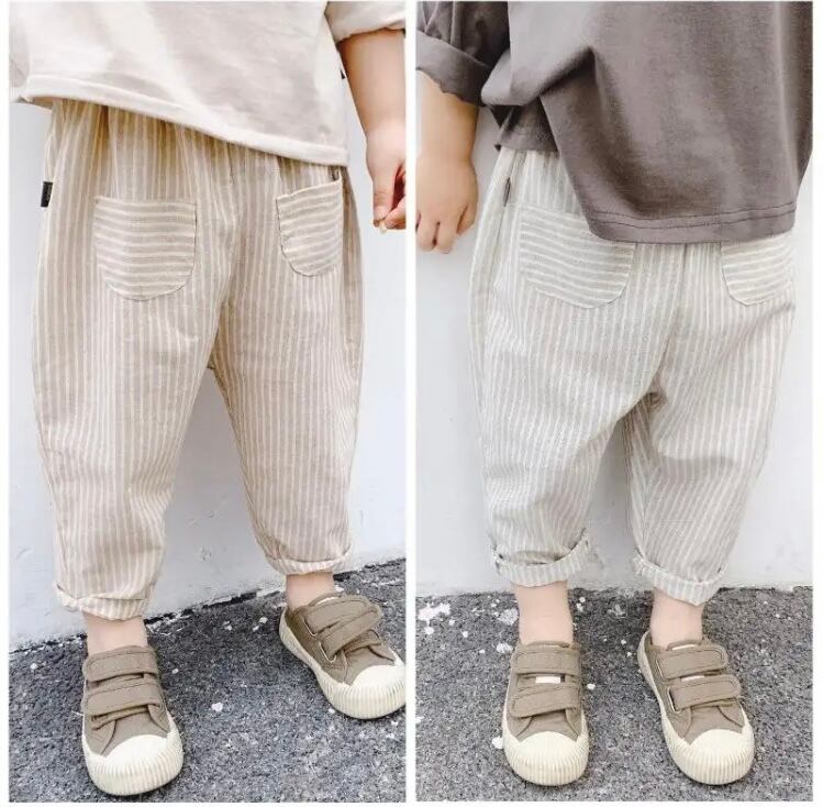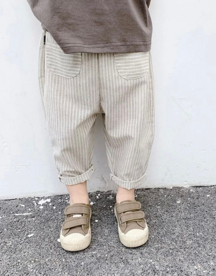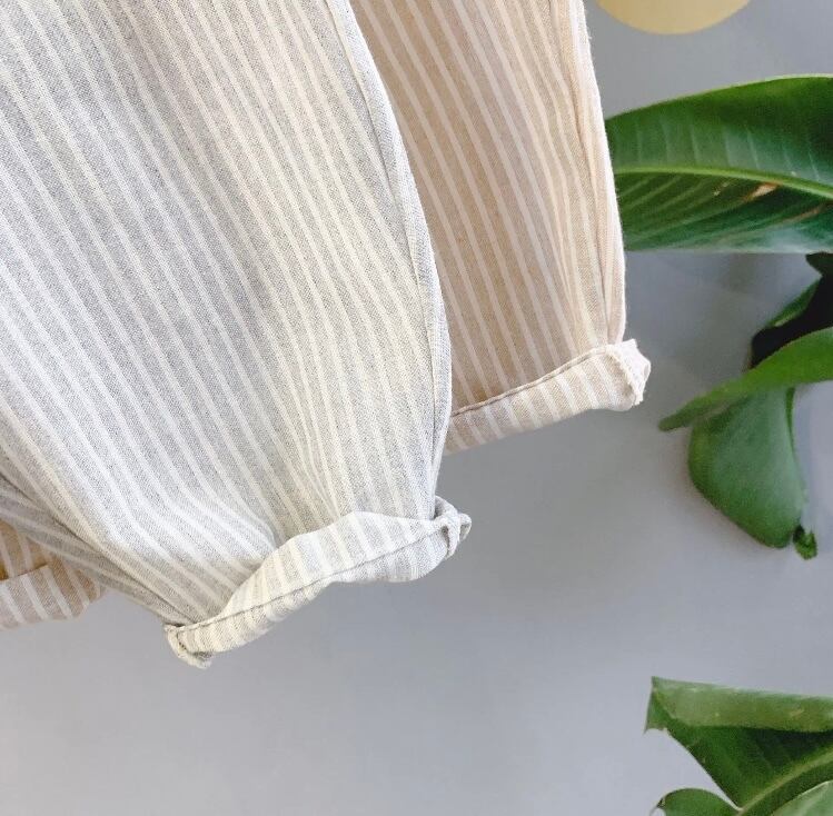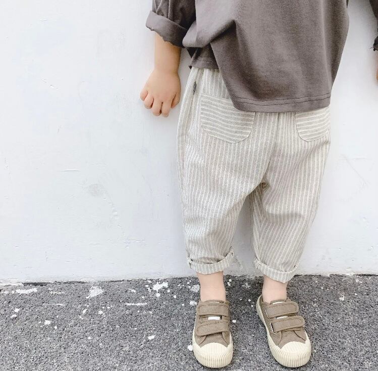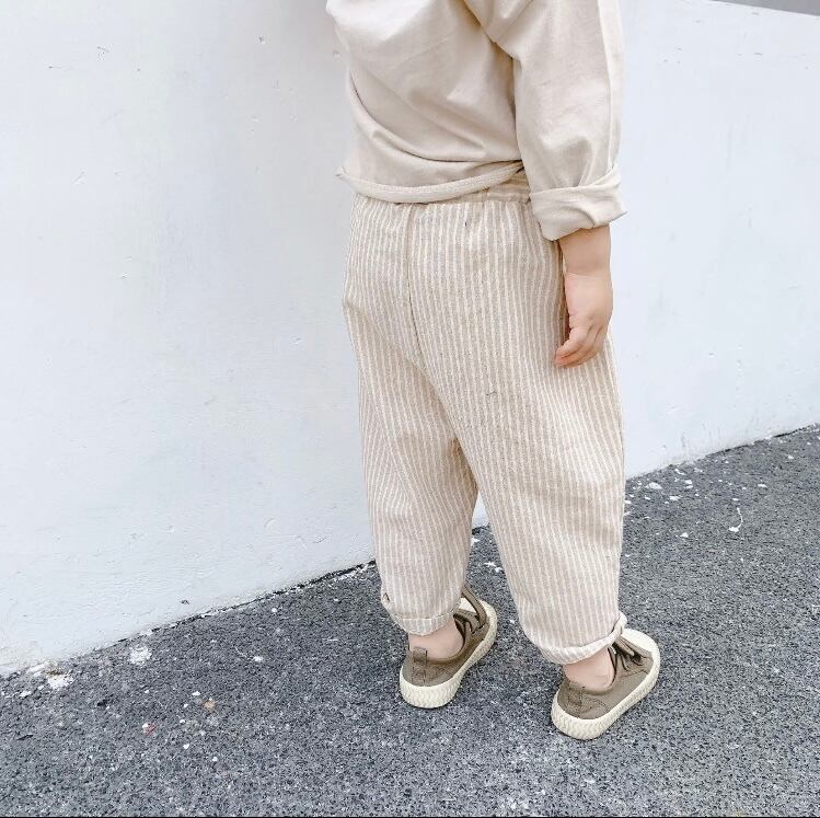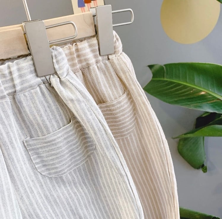 ナチュラルなカラーのストライプ柄とゆったりしたシルエットが可愛い、カジュアルパンツです‼︎