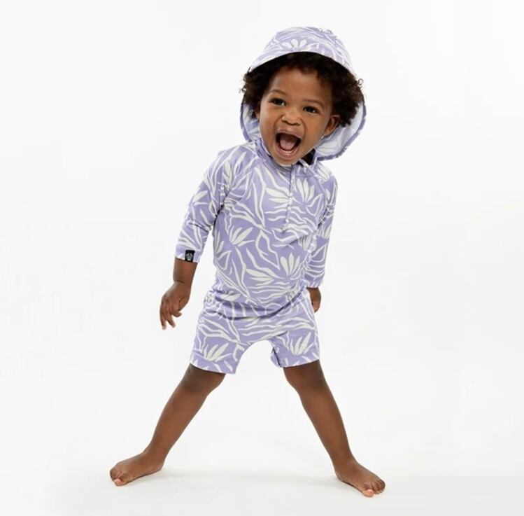 長袖つなぎタイプなので、紫外線からお子様の肌をしっかりと守ってくれて