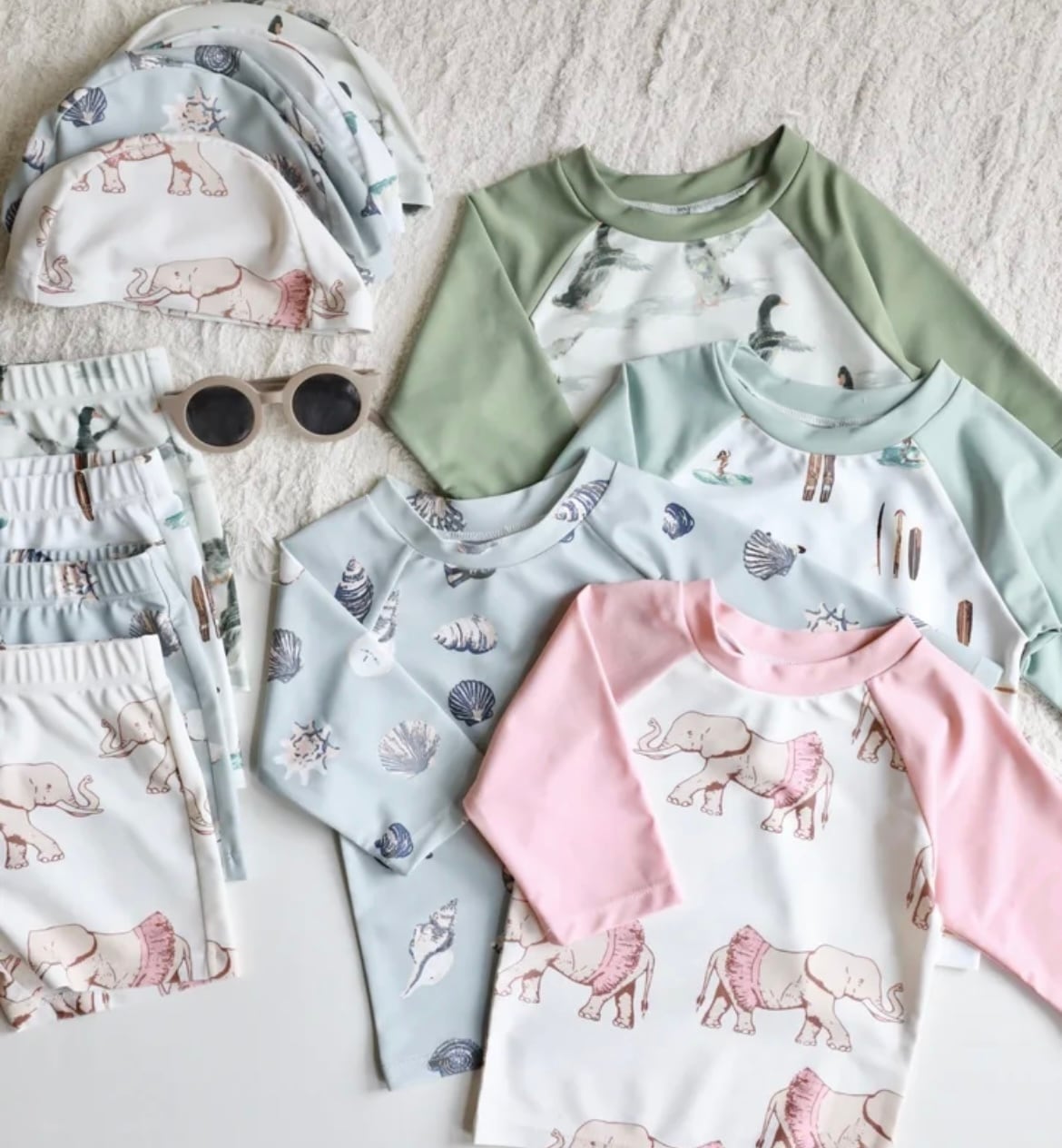 color▶︎▷▶︎pink(ゾウ)blue(シェル)green(サーフィン)khaki(トリ)